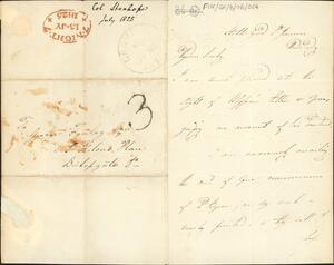 E. Hill to George Finlay. Anavrita, 22 December 1835. Apologizes for delay in returning book lent by George Finlay. With an old paper enclosure.