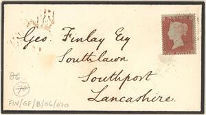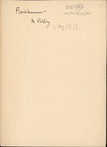 George Grote to George Finlay. 12 Saville Row, London, 23 August 1854. Acknowledges receipt of letter with article to be submitted to Editor of Edinburgh Review (with stamped envelope addressed to George Finlay, South Lawn, Southport, Lancs., containing Grote's visiting card).