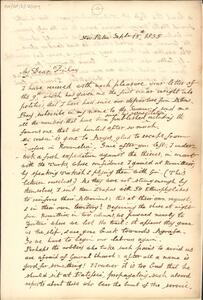 The Revd. Jonas H. King to George Finlay. 18 August 1845. Information on American Missionary Schools in Greece 1828-37. With an older paper enclosure.