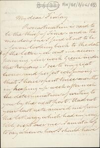 Leicester Stanhope, Stable Yard, St.James, to George Finlay, (?) June 1825 . Praises George Finlay's sketch of Byron.