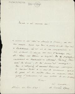 Bernard Bauer to George Finlay. Athens, 20 February 1845. Asks George Finlay to lend him Leake's book on Athens for M. de Bruce (in French).