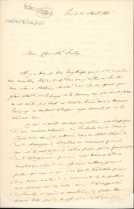 Jean-Alexandre Buchon to George Finlay. Paris, 16 April 1845. Re B's publication on Frankish principality of the Morea. Discovery in Brussels of important MS. relating to the Morea (in French).