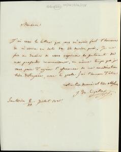 J. de Cigalla to George Finlay. Santorini, 8/20 July 1845. Thanks for George Finlay's letter of recommendation (in French).