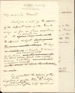 George Finlay to Sir Edmund Lyons. Athens, 26 July 1845. Note of expenses of different camps in Greek army (regulars and irregulars); list with details enclosed, letter in duplicate.