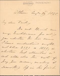 Sir Edmund Lyons to George Finlay. Athens, 19 August 1845. Queries re accounts.