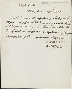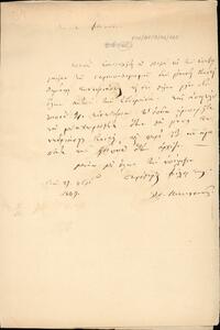 Demetrios Kalliphronas to George Finlay. 27 September 1847. Re postponement of meeting of city council (in Greek).