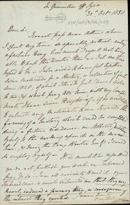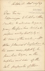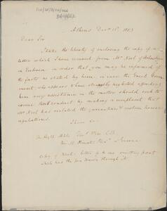 Col. William Mure to George Finlay. 20 November 1849. Introducing Mr. Allan Gilmour who is visiting Athens.