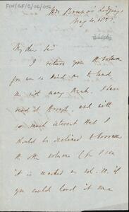 The Revd. W. Palmer to George Finlay. Mr. Bruno's Lodgings, 4 May 1851. Returns books. Includes Palmer's visiting card.