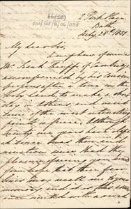 James Thrupp to George Finlay. 2 Park Place, Bath, 28 July 1851. Introduces T's nephew Frank Thrupp.