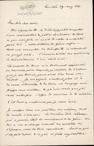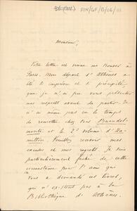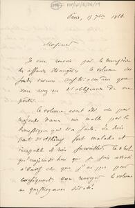 Jean-Jacques-Marc Armingaud to George Finlay. Paris, . . . 1864. The book has now been returned. Delay due to his illness in Greece when volume packed in error in his baggage. Apologizes.