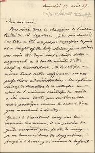 George Finlay to G. Deville, Membre de l'Ecole Française à Athènes. Athens, 30 August 1864 'Carbon' copy requesting D to forward George Finlay's letter re book lent to J. Armingaud.