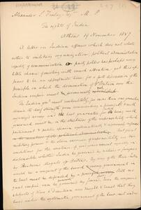 George Finlay to Alexander S. Finlay, M.P., Castle Toward, Argyllshire. Athens, 19 November 1857. 'Carbon' copy of a letter to his cousin A.S.F. entitled 'On the principle of the permanent domination of Great Britain in the Indian empire'.