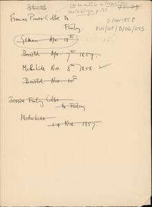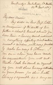 Jessie Finlay Cobbe to George Finlay. Newbridge House, Malahide, Co. Dublin, 24 November 1857. Introduces her cousin Miss [F: P.] Cobbe who intends to visit Athens.