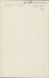 Bayard Taylor to George Finlay. Athens, 21 January 1858. Returns George Finlay's papers with thanks for loan. With an old paper enclosure.
