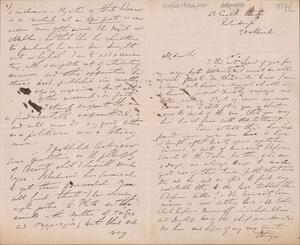 Strack to George Finlay. 19 May 1862. 'Mr. S. has the honour to communicate to Mr. George Finlay the successful delivery of his friend Lady Athens by a little temple in the neighbourhood of the theatre of Dionysos this morning the 19th May.' With old paper enclosure.