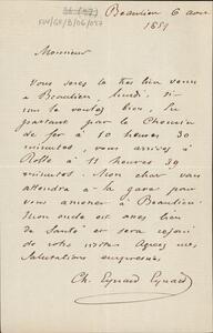 Charles Eynard Eynard to George Finlay. Beaulieu, 6 August 1859. Invitation to visit him and arrangements to meet him (in French).