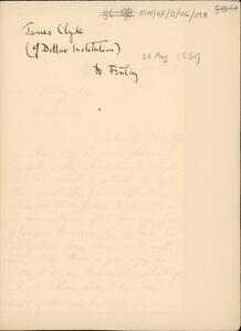 James Clyde to George Finlay. Ayr, 26 August 1859. To introduce Mr. Malcolm C. Taylor who is visiting Athens. C has become Foreign Master in Dollar Institution. With an old paper enclosure.