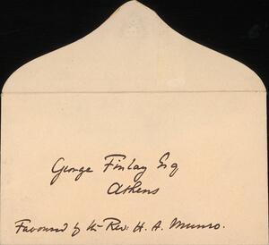 William George Clark to George Finlay. Trinity College, Cambridge, 11 November 1860. Introduces the Revd. H. A. Munro who is making a tour of Greece. With original envelope.