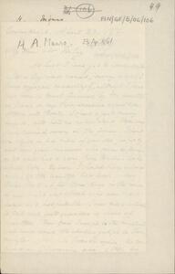 George Finlay to J. Armingaud, Membre de l'Ecole Française d'Athènes [sent to 17, rue Cassette, Paris, by G. Deville]. Athens, 30 August 1864. Requests return of his copy of Pt. I of Thomas and Tafel which A failed to send back before he left Greece 'otherwise I shall feel it a duty to take every measure in my power for obtaining justice. My arms and name are pasted in the volume'. Paper label with M. Armingaud's name and address, attached to same sheet as G. Deville (see above).
