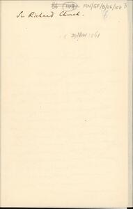 Sir Richard Church to George Finlay. 20 (? 29) November 1861. C declines further discussion of list of heroes of Greek Revolution proposed by George Finlay. With old paper enclosure and copied inscription.