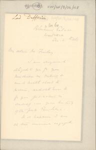 Lord Dufferin to George Finlay. Blenheim Palace, Woodstock, 4 December 1861. Expresses thanks for promised picture and for receipt of George Finlay's History of the Greek Revolution. With old paper enclosure.