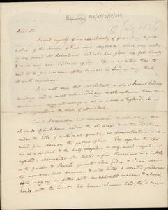 M's own illness. Complaints about Bruno's accusations and discussion of Byron's last illness (stuck on front flyleaf of Julius Millengen, Memoirs of the Affairs of Greece . . ., London, 1831; this book contains a number of pencilled additions by George Finlay and some reference to himself).
