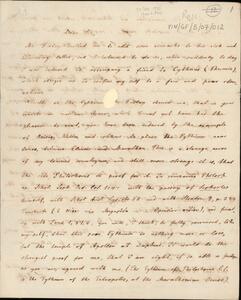 ? to George Finlay. Athens, 19 October 1841. Thanks for receipt of pamphlet; appreciation of George Finlay's work on Greece (stuck on front flyleaf of Trans. Roy. Soc. of the United Kingdom, vol. 3, London, 1839).