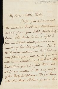 Sends The Picture Bible for the Young, London, 1834, as Christmas present to Helena (sic) Finlay (letter loose in book).