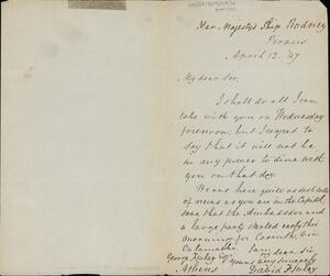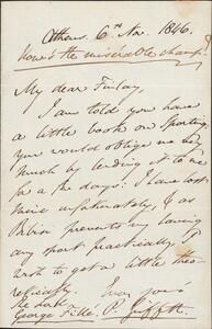 P. Griffith to George Finlay. Athens, 6 November 1846. Request for loan of book on sport (previously loose in The Sportsman's Directory, London, 1838).