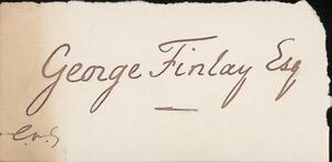? to George Finlay, n. d. Thanks for The Eastern Star newspaper and comments on a thrological dispute (stuck near back of J. S. B., The Pronunciation of Greek..., Edinburgh, 1852).