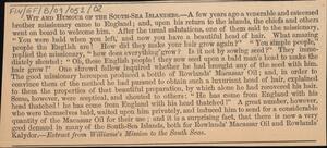 Press cutting on 'the wit and humour of the South-Sea Islanders' (previously loose in J. L., Prehistoric Times . . ., London, 1865).