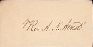 Visiting card of Rev. A. N. Arnold (previously loose in F. R. Chesney, Expedition for the Survey of the Rivers Euphrates and Tigris . . ., vol. 1, London, 1850).