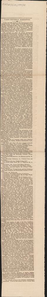 News clipping on Paris Universal exhibition, The Times, 26 Mar 1856 (previously loose in Official Catalogue of the Great Exhibition . . ., London, 1851).