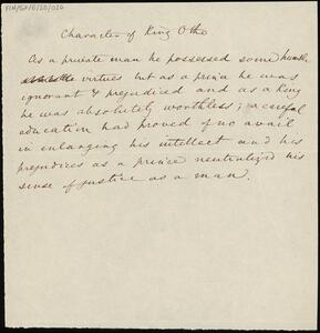 Note on the character of King Otto (undated).