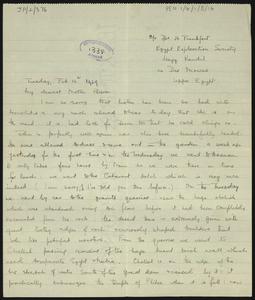 Sent “c/o/ Egypt Exploration Fund, Hagg Kandil near Der Mowes, Upper Egypt” [Amarna].