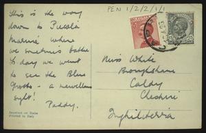 Comprises a postcard with a photograph of Capri (Italy) containing a note about the image, sent to "Miss White" in Caldy, Cheshire.