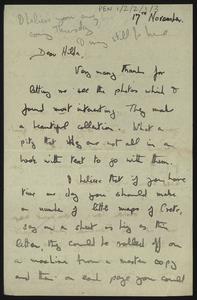 Thanking Hilda for letting him see photographs of Crete and suggesting that she make maps of Crete to go with the photographs, expressing regret at not having seen her but that he "quite realised the situation with Joy etc", inviting her to visit when she could, and mentioning broken transport.