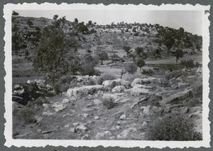 [PEN/7/2/6/280], Photograph of a cone shaped mound captioned “The “Phournos” between Elyros and Suia” [2 ancient cities, one near Rodovani and the other in Soúyia], Crete, 10 May 1935