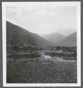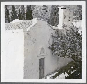 Photograph of a view of “Khristos and Mallais, [and Mount] Dickte from Exakhosti Monastery” [Christós and Málai from Ierá Moní Panagías Exakoustís], Crete