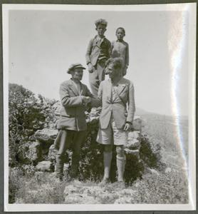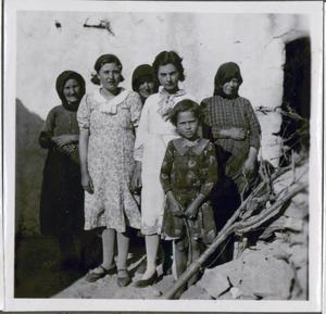 [PEN/7/2/6/854], Photograph of Kronis Bardakis and 2 children standing, captioned “Kerati [and] Koprani Group by Agios Stephanos”, [Ágios Stéfanos], Crete, 8 May 1939