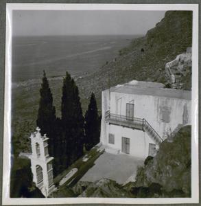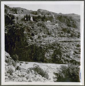 [PEN/7/2/6/851], Photograph of a man standing in the distance, part 3 of a series of 5 photographs captioned “Agios Ioannes Kopsas”, [Ágios Ioánnis], Crete, 8 May 1939