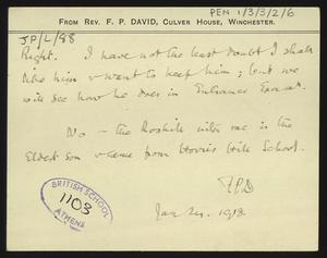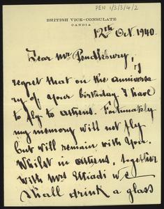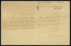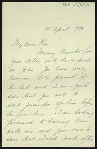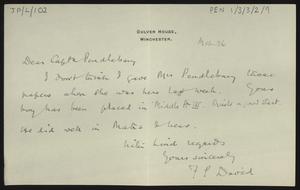 [PEN/1/3/3/2/52], Letter to [Herbert] Pendlebury from James Cullen, with an envelope, 7 Oct 1924