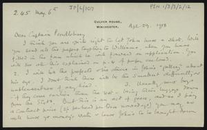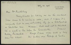Letter to [Herbert] Pendlebury from James Cullen, with an envelope