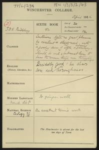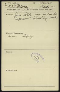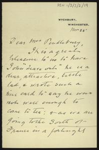 [PEN/1/3/3/3/5], Note to [Herbert Pendlebury] from W. S. [Hadley], Pembroke College Lodge, 19 Oct 1927
