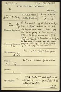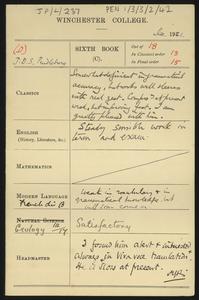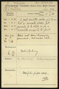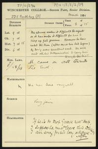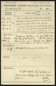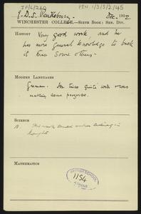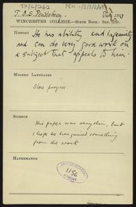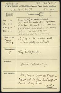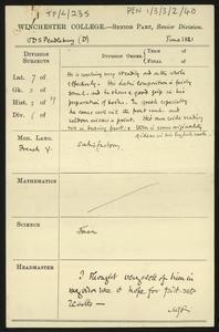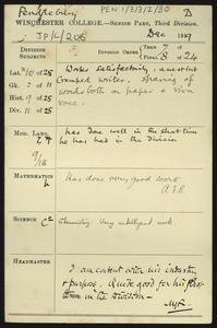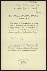Written on a printed slip sent with an application form for admission to the College.