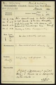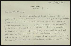[PEN/1/3/3/3/2], Pro forma thank you letter to [Herbert] Pendlebury for a donation to a war memorial fund, with a note from W. S. Hadley, Pembroke College Lodge, 30 Sep 1924