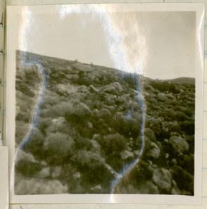 Group photograph of M. I. Turnbull, Hilda White, John Pendlebury, Bob Dixon and Winifred Lamb, sitting down on rocks.