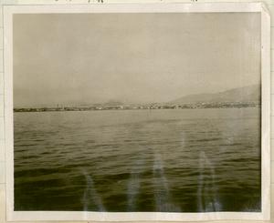 Comprised of 3 photographs stuck together, view looking out onto the bay.