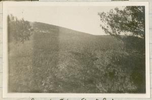 Includes man sitting on wall, and [Hilda Pendlebury and Humfry Payne] walking next to wall (in the distance).