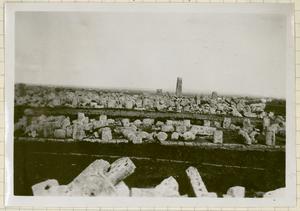 [PEN/2/2/4/96], Photograph of “The Paved Road and Houses, Demeter [Temple of Athena], Poseidon [Temple of Hera II], The “Basilica” [Temple of Hera I] from the South West”, Paestum, Wednesday, January 22, 1930
